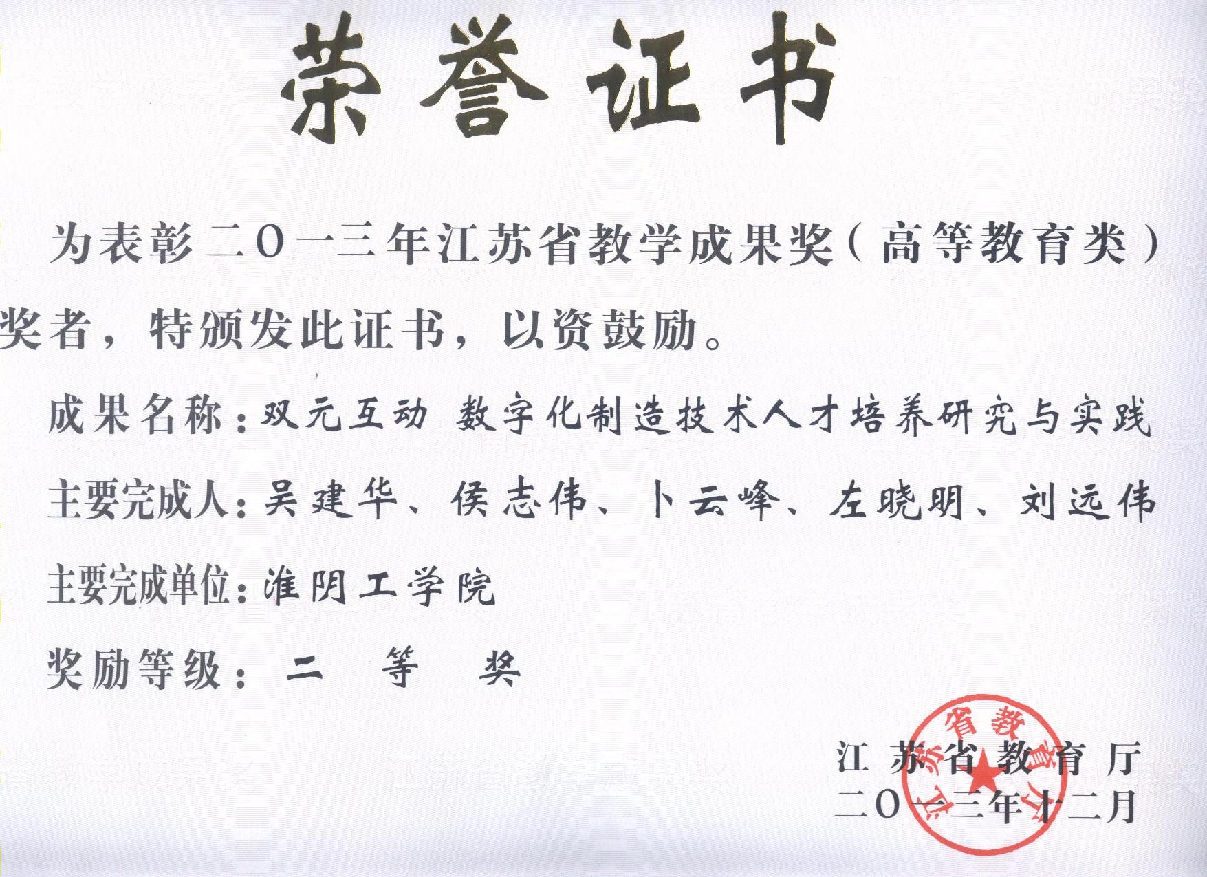 江苏省教学成果奖二等奖,江苏省教育厅,2013年。