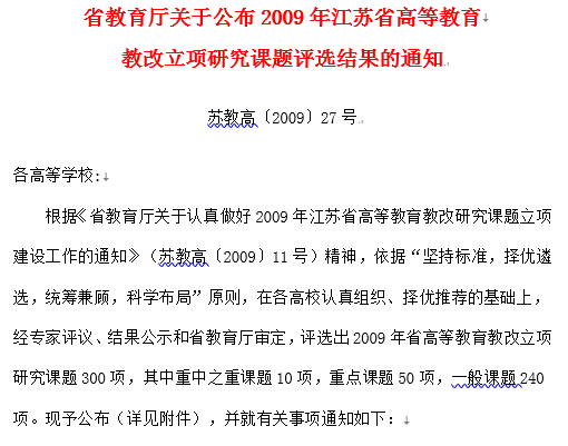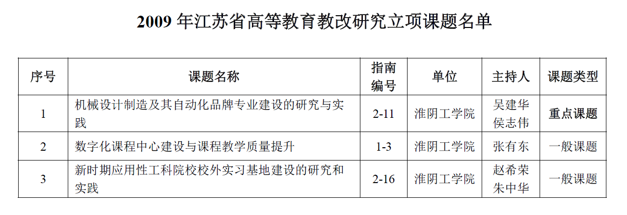 江苏省高等教育教改研究课题,2009年。