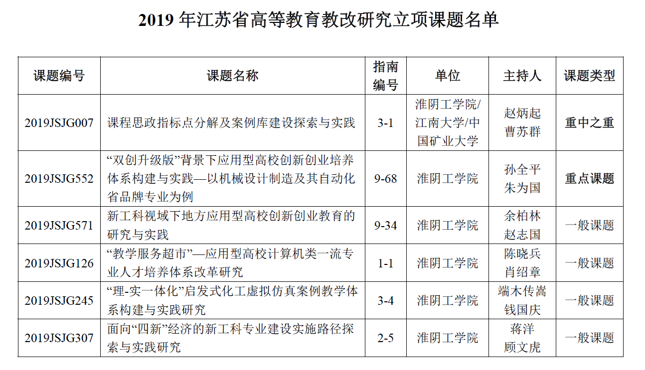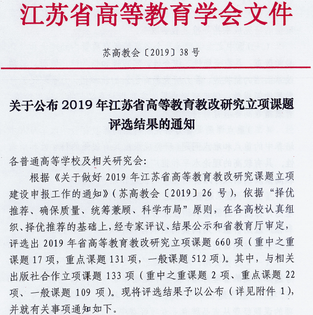江苏省高等教育教改研究课题,2019年。