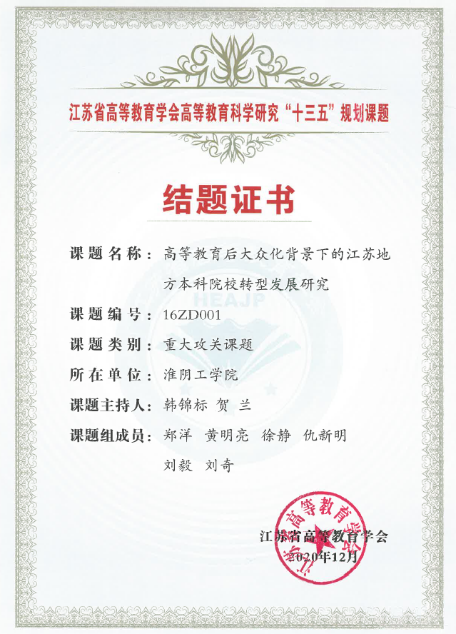 江苏省高等教育科学研究“十三五”规划课题,重大攻关课题,2016年。