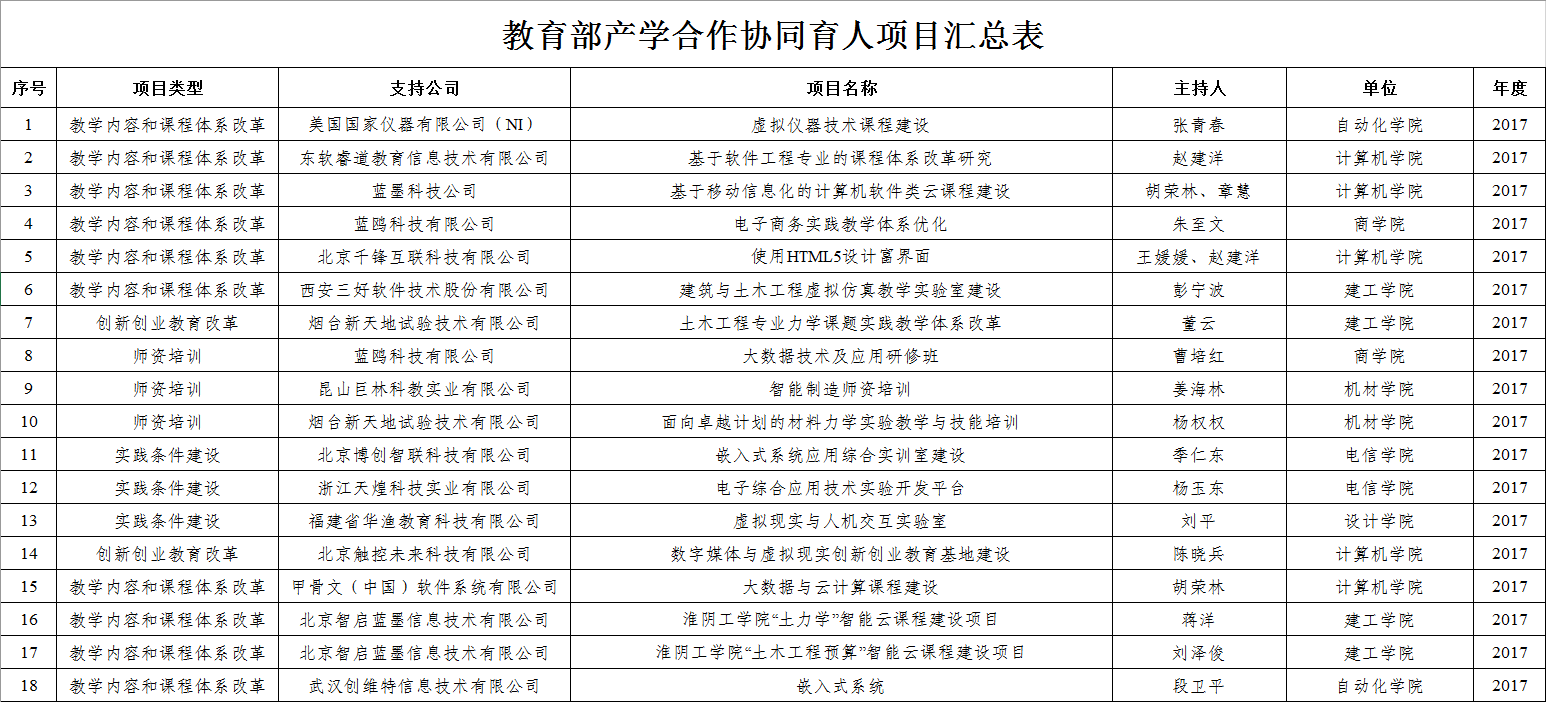 淮阴工学院92项项目获批教育部产学合作协同育人项目,教育部,2017-2021。