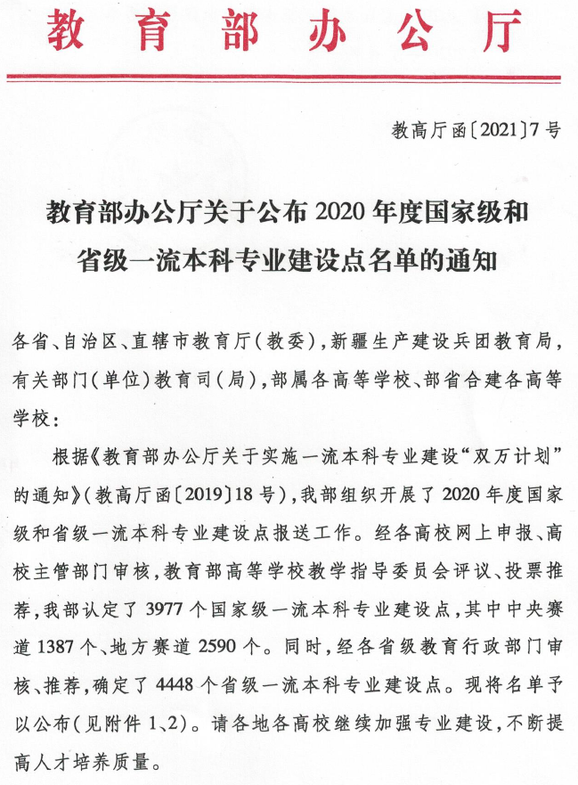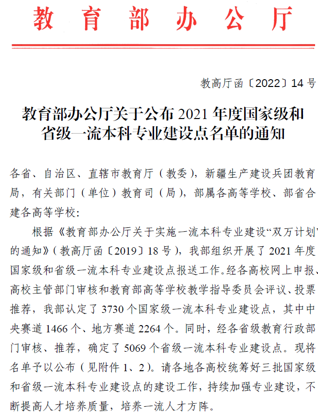 淮阴工学院8个专业获批国家一流本科专业建设点,教育部,2019-2021年。