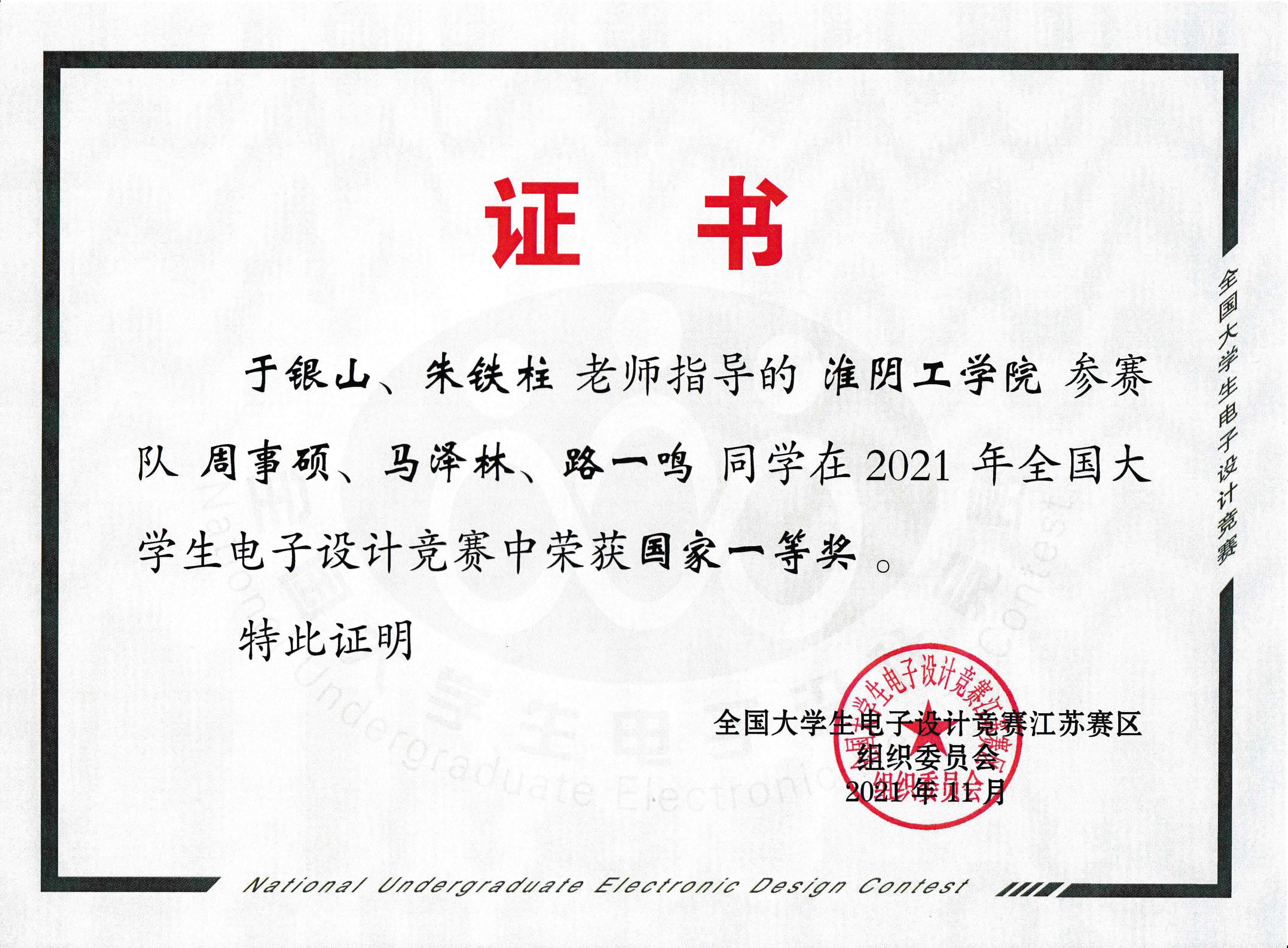全国大学生电子设计竞赛国家级一等奖1项,2021。