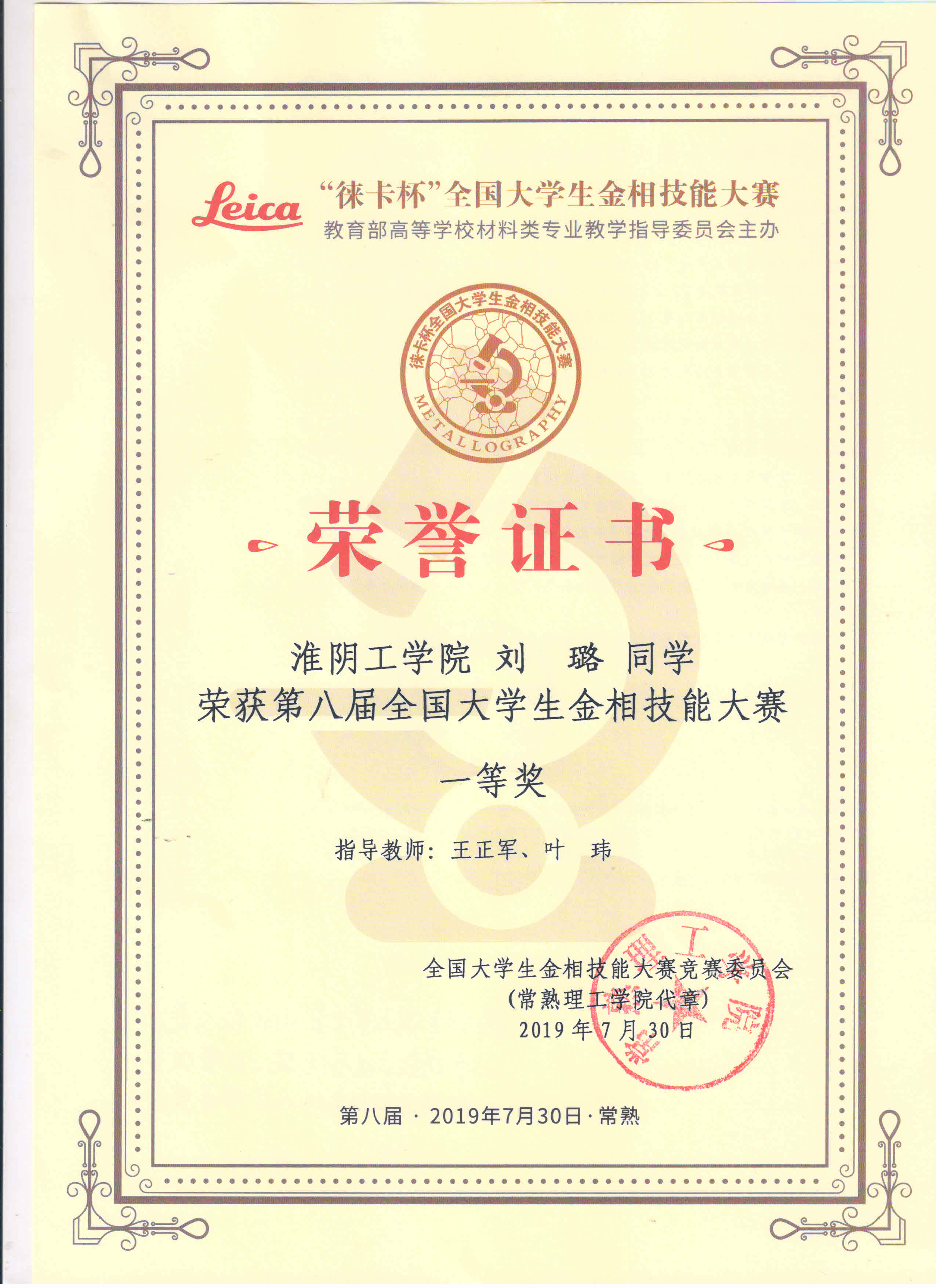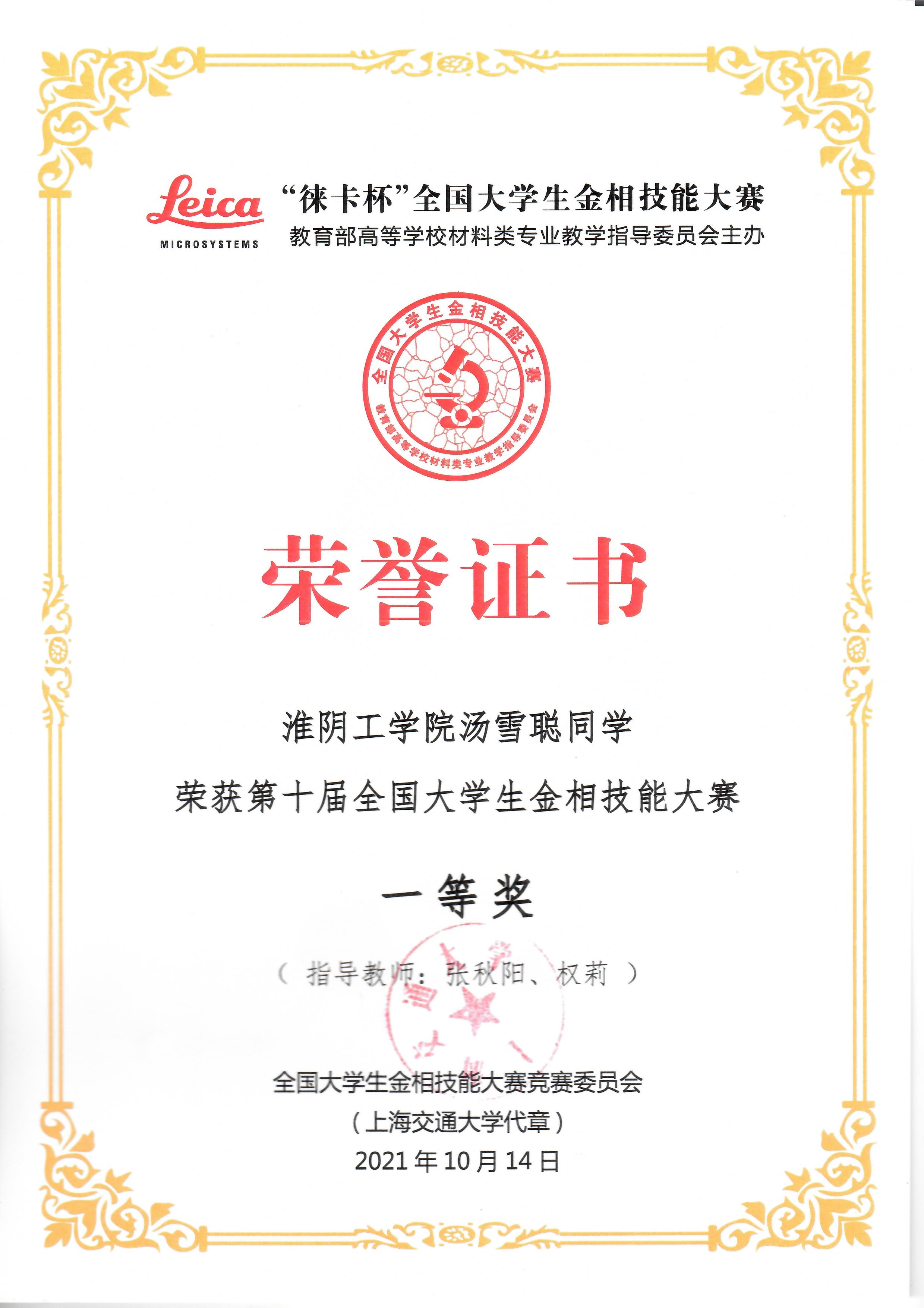 全国大学生金相技能大赛国家级一等奖2项,2019-2021。