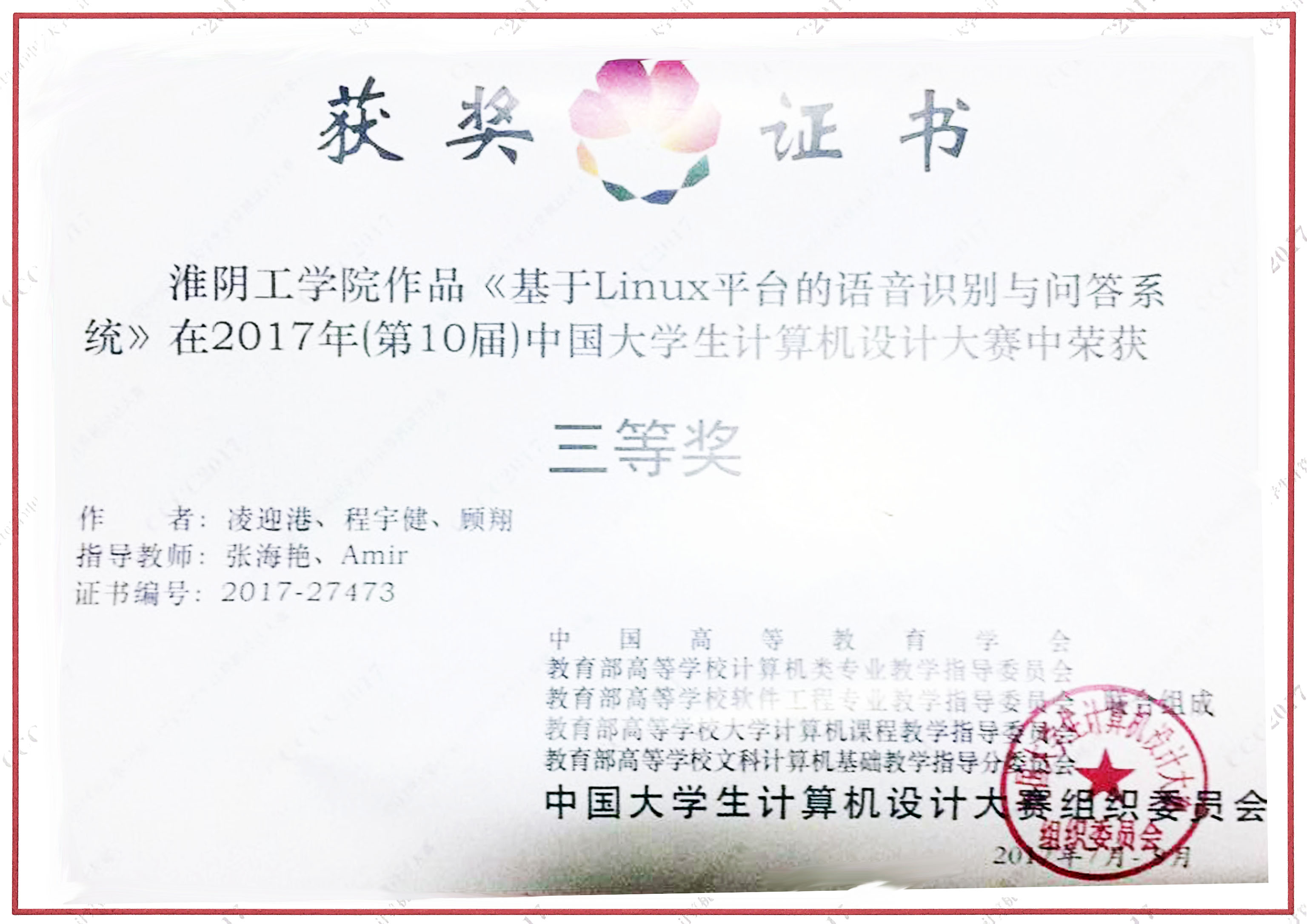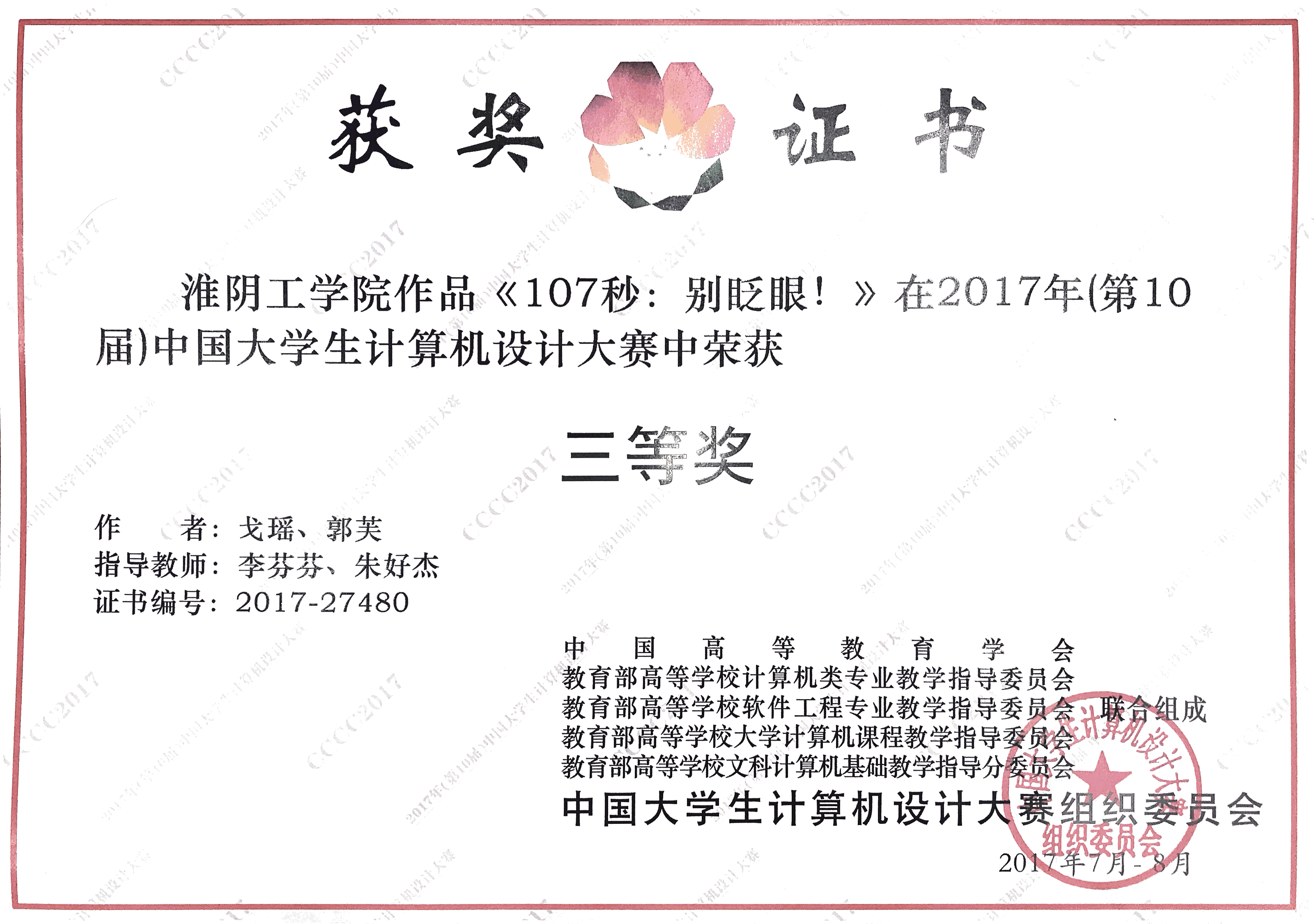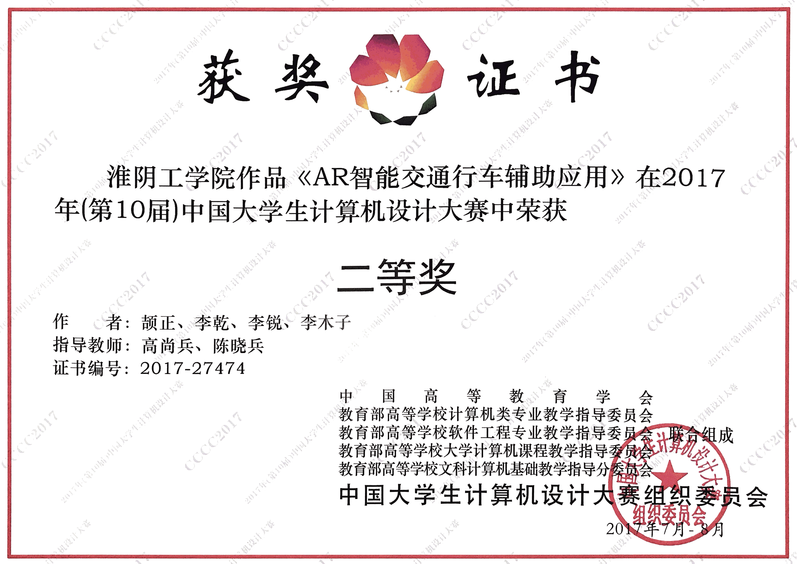 全国大学生计算机设计大赛国家级奖项,2017-2020。