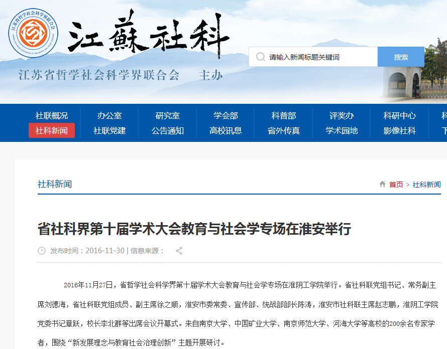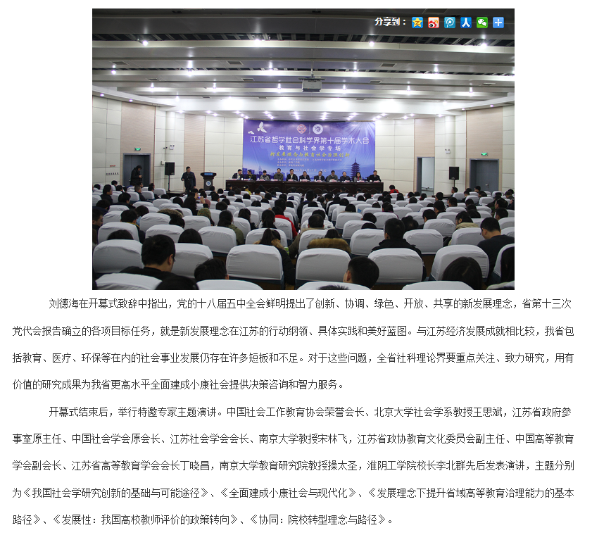 江苏省社科界第十届学术大会,李北群以《协同:院校转型理念与路径》为题作主题报告,2016年11月27日。